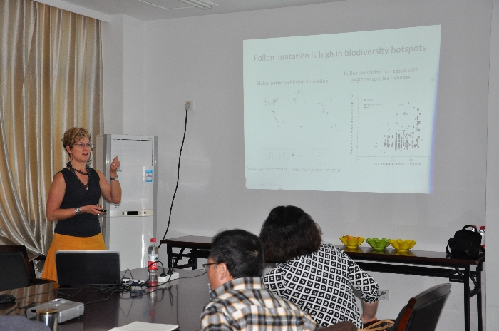 3月19日下午,应浙江省植物进化生态学与保护重点实验室邀请,美国匹兹堡大学生物学系Tia-Lynn Ashman教授来校讲座。Ashman教授整合多年科研成果,作了题为“Pollination in biodiversity hotspots: importance of post-pollination interactions”的讲座。讲座中,Ashman教授着重讲解生物多样性研究热点区域的生态群落中不同植物授粉后的相互作用的成因、成本及可能的影响因子,为师生们展示了传粉生态学领域的最新科研成果。讲座内容详实丰富,师生互动热烈。校科研处(地方合作处)处长李钧敏教授主持讲座,生命科学学院师生参加讲座。